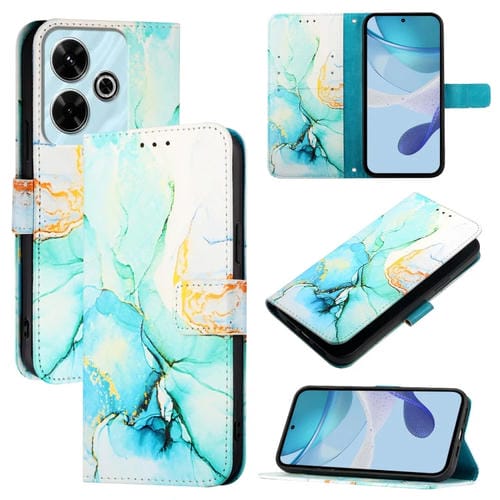 Funda de Cuero con Tapa y Diseño de Mármol para Redmi 13 4G Pt003 (Verde)