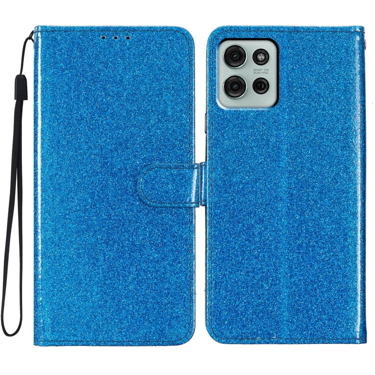 Funda de Cuero con Tapa y Purpurina para Motorola Moto G75 5G (Azul)
