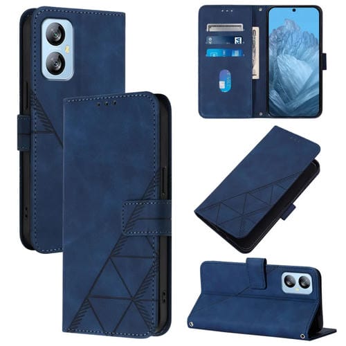 Funda de Cuero con Tapa y Relieve 3D para BlackView A52 Crossbody (Azul)