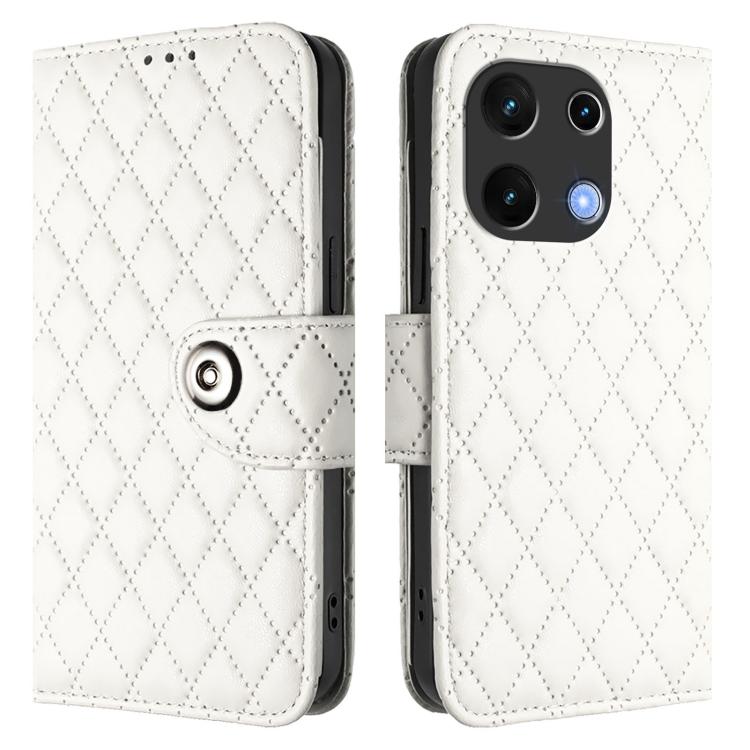 Funda de Cuero para Teléfono Umidigi Note 100 con Tapa y Textura Rómbica con Cordón (Blanco)