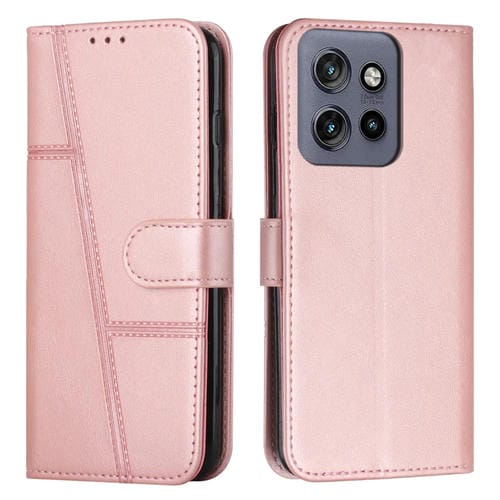 Funda de Cuero Becerro con Costuras y Hebilla para Motorola Edge 50 Neo (Oro Rosa)