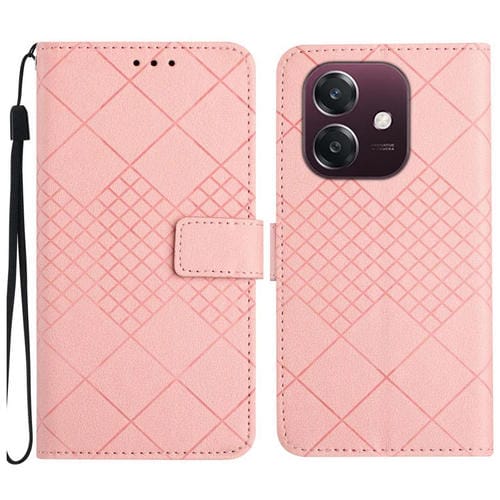 Funda de Cuero con Textura de Cuadrícula Rómbica para Teléfono Oppo A3X India (Rosa)