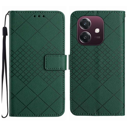 Funda de Cuero con Textura de Cuadrícula Rómbica para Teléfono Oppo A3X (Verde)