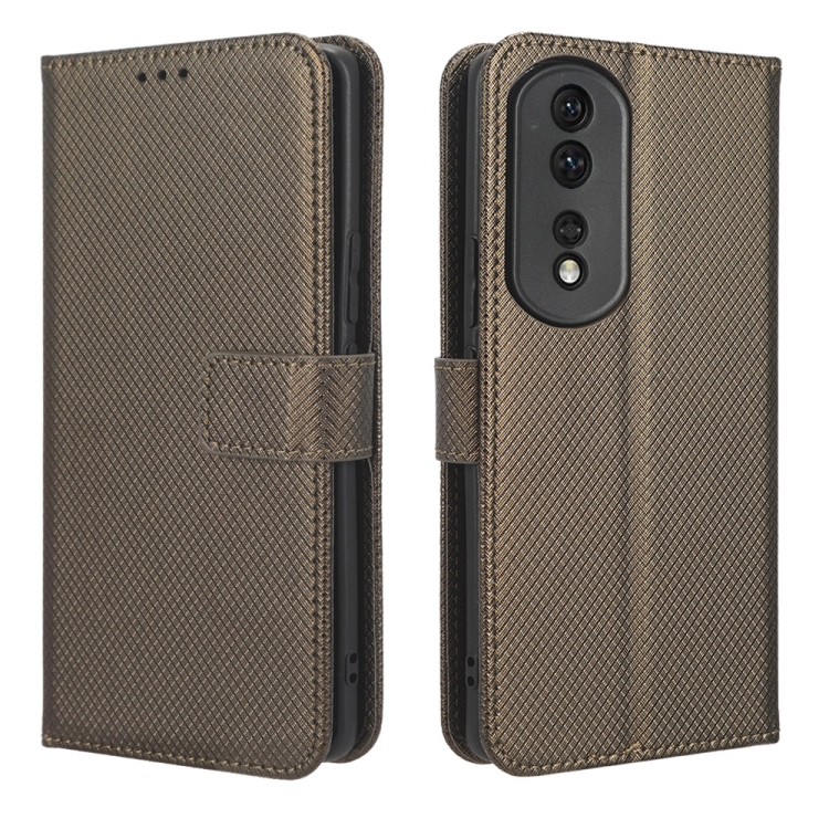 Funda de Cuero con Textura de Diamante para Honor 80 Pro 5G (Marrón)
