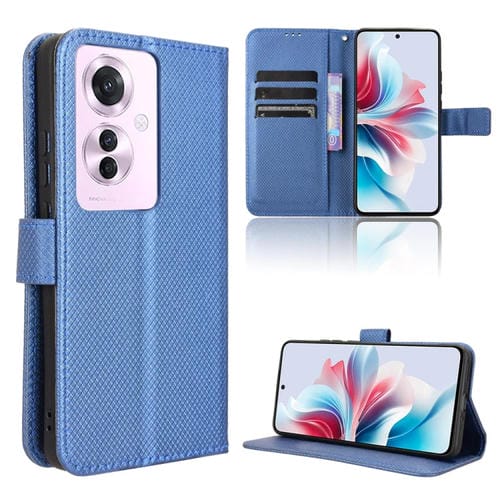 Funda de Cuero con Textura de Diamante para Oppo Reno11 Pjh110 (Azul)