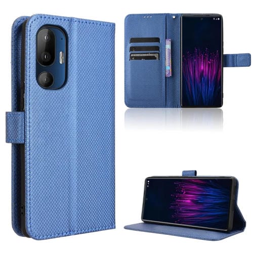 Funda de Cuero con Textura de Diamante para HTC U24 Pro (Azul)