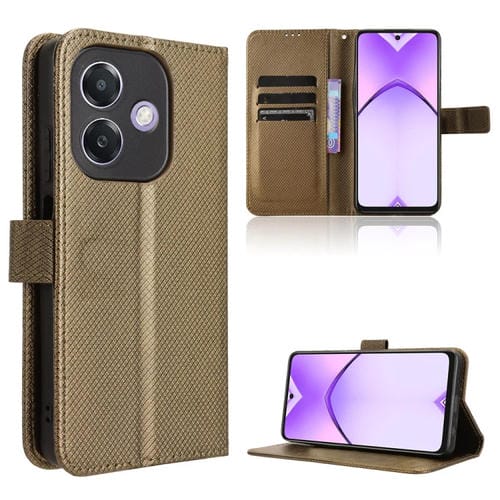Funda de Cuero con Textura de Diamante para Oppo A3X 5G (Marrón)