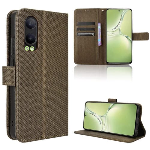 Funda de Cuero con Textura de Diamante para Oppo K12X 5G / Oneplus Nord Ce4 Lite 5G (Marrón)