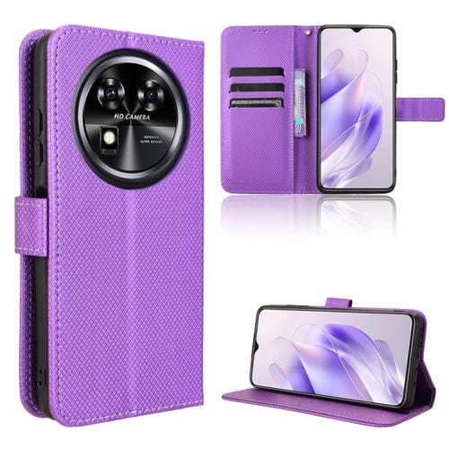 Funda de Cuero con Textura de Diamante para Teléfono Oukitel C37 (Morado)