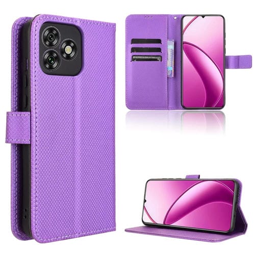 Funda de Cuero con Textura de Diamante para Teléfono Oukitel C53 (Morado)