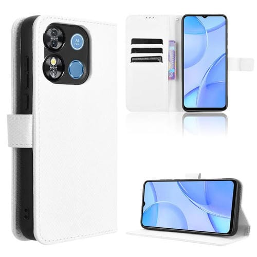 Funda de Cuero con Textura de Diamante para Oukitel C57S (Blanca)