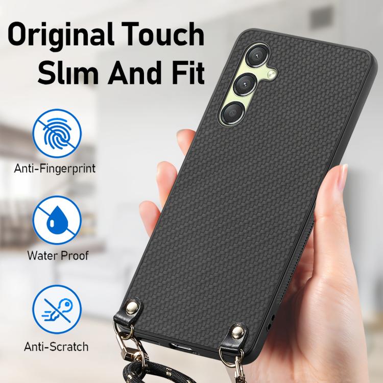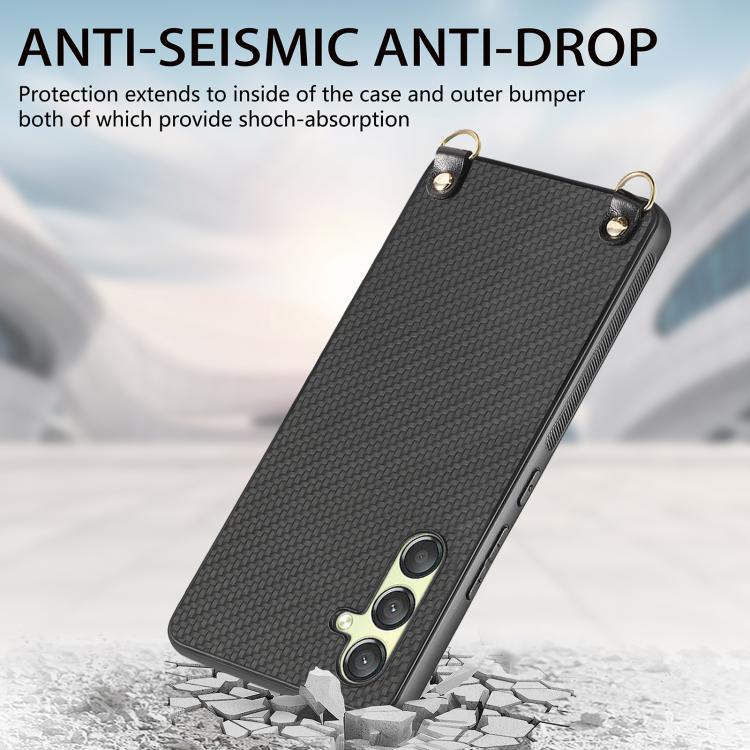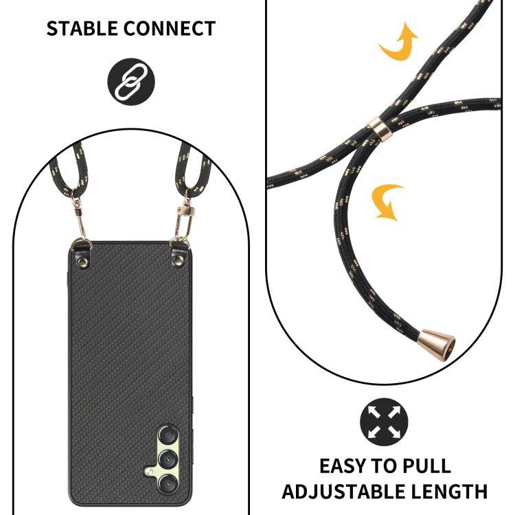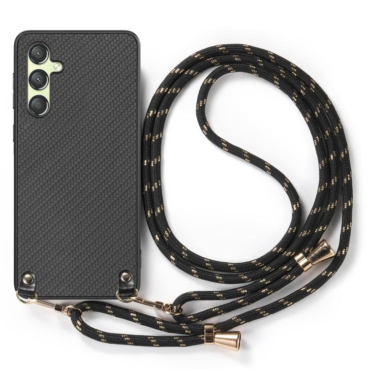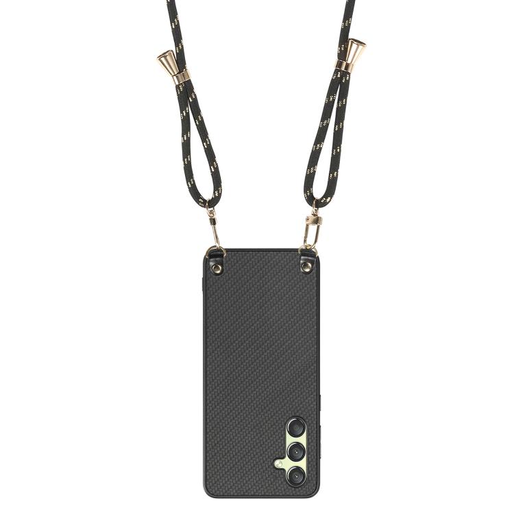 Funda de Cuero Samsung Galaxy A15 Textura Fibra de Carbono con Correa Cruzada (Negro)