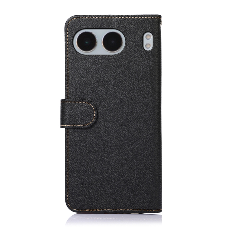 Funda de Cuero Khazneh RFID para OnePlus Nord 4 (Negra) con Textura de Lichi