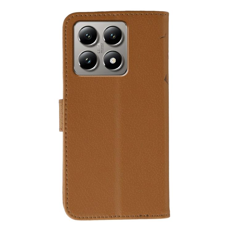 Funda de cuero con textura de lichi y estampado de plumas para Xiaomi 14T Pro (marrón)