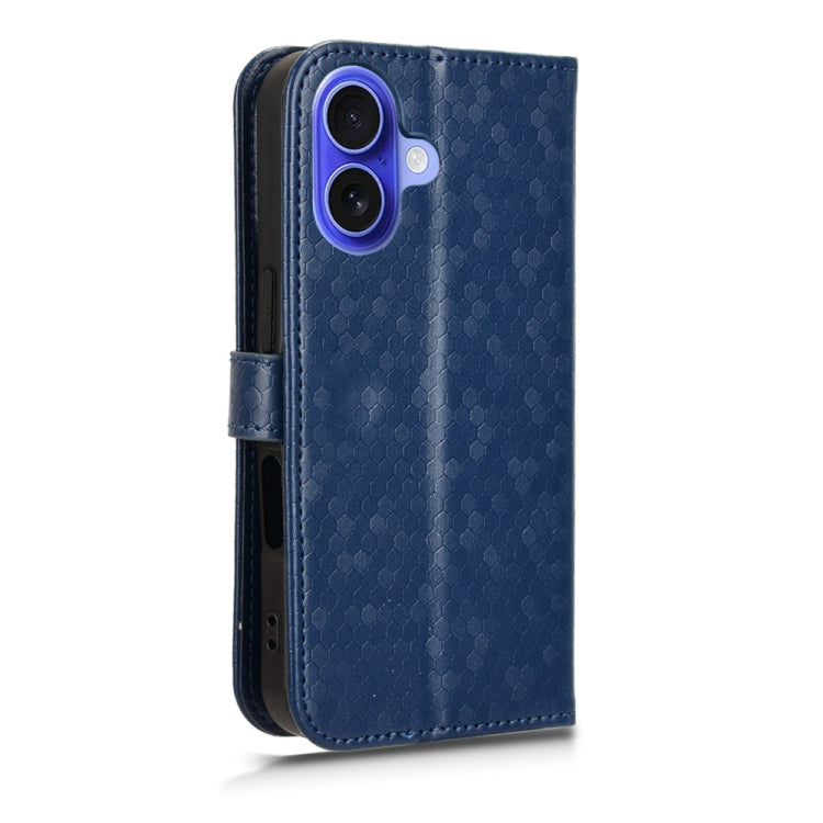 Funda de Cuero para iPhone 16 Textura de Puntos en Forma de Panal (Azul)