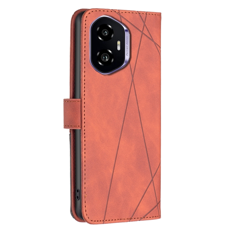 Funda de Cuero para Honor 300 con Textura de Rombos y Hebilla Magnética (Marrón)