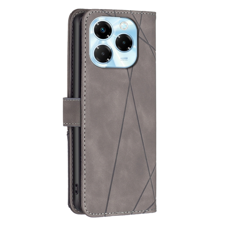 Funda de Cuero Infinix Note 40X 5G con Textura de Rombos y Hebilla Magnética (Gris)