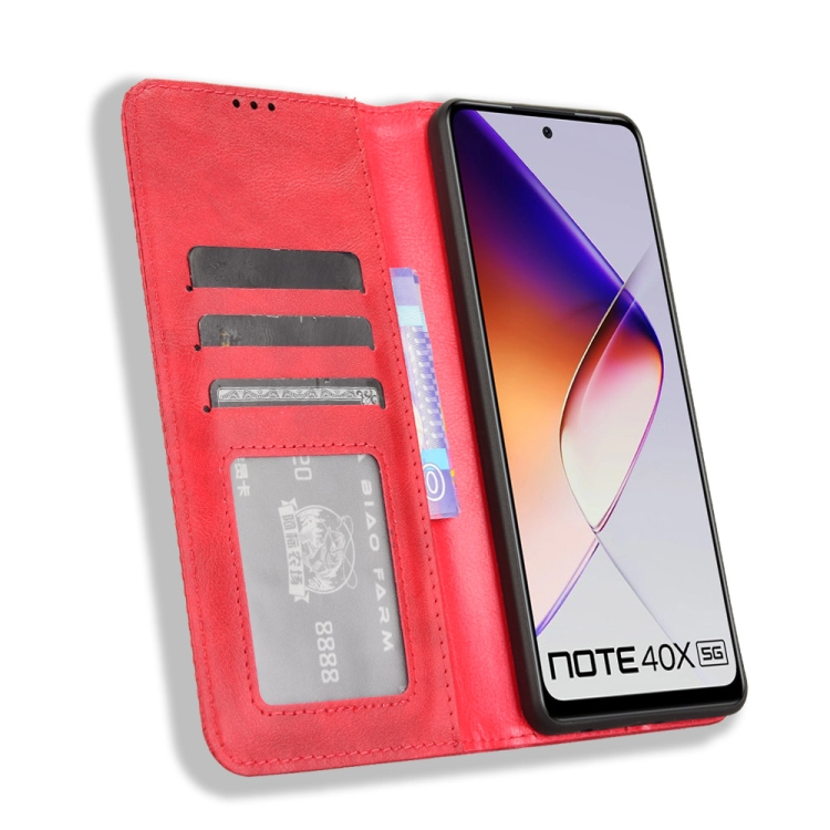 Funda de Cuero Infinix Note 40X 5G X6838 con Textura Retro y Hebilla Magnética (Rojo)