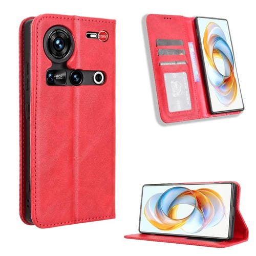 Funda de Cuero ZTE Nubia Z70 Ultra Textura Retro Hebilla Magnética (Roja)
