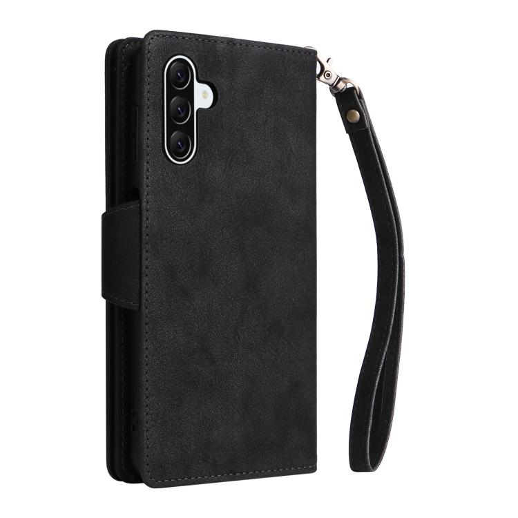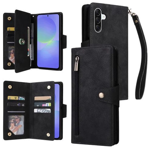 Funda de Cuero Samsung Galaxy A36 5G con Tres Pliegues y Hebilla de Remache (Negro)