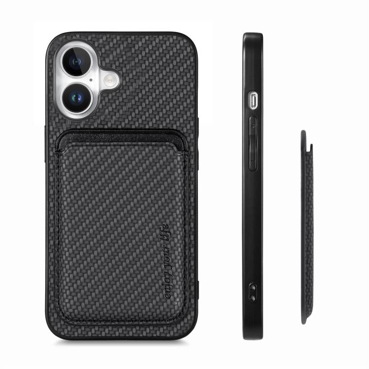 Funda de cuero de fibra de carbono con tarjetero Magsafe para iPhone 17 (negra)