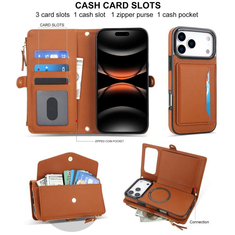 Funda de cuero desmontable con cordón para iPhone 17 Pro Max (marrón)