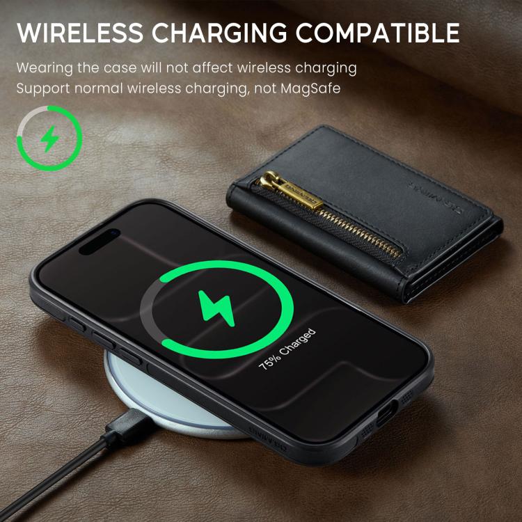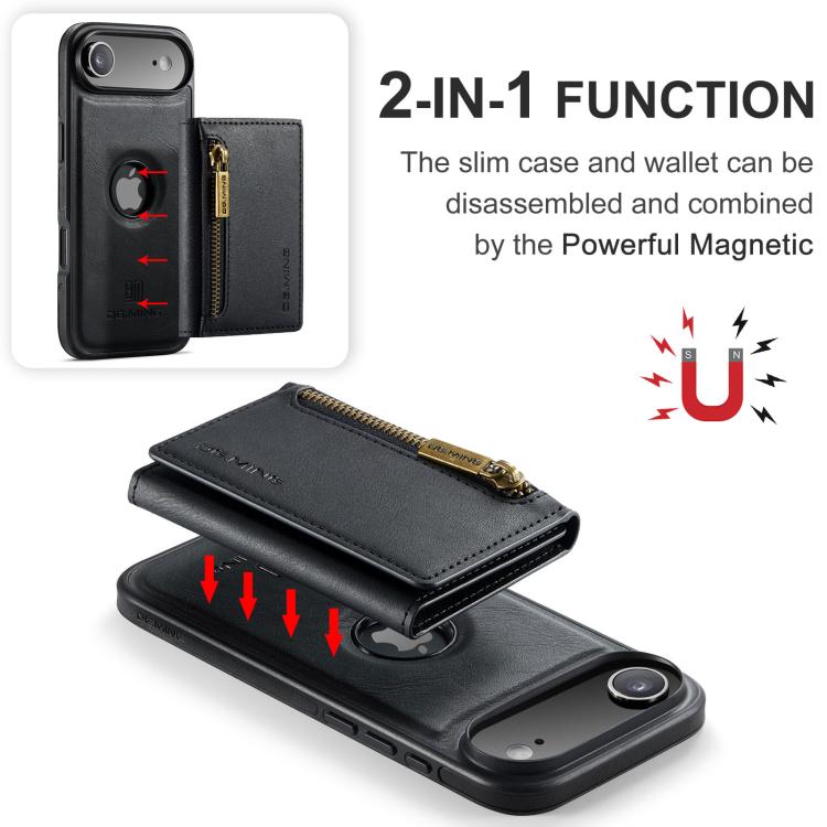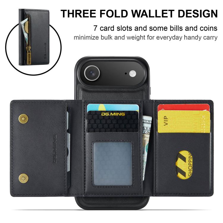 Funda de cuero desmontable con cremallera RFID para iPhone Air DG.MING M5 Series (negro)