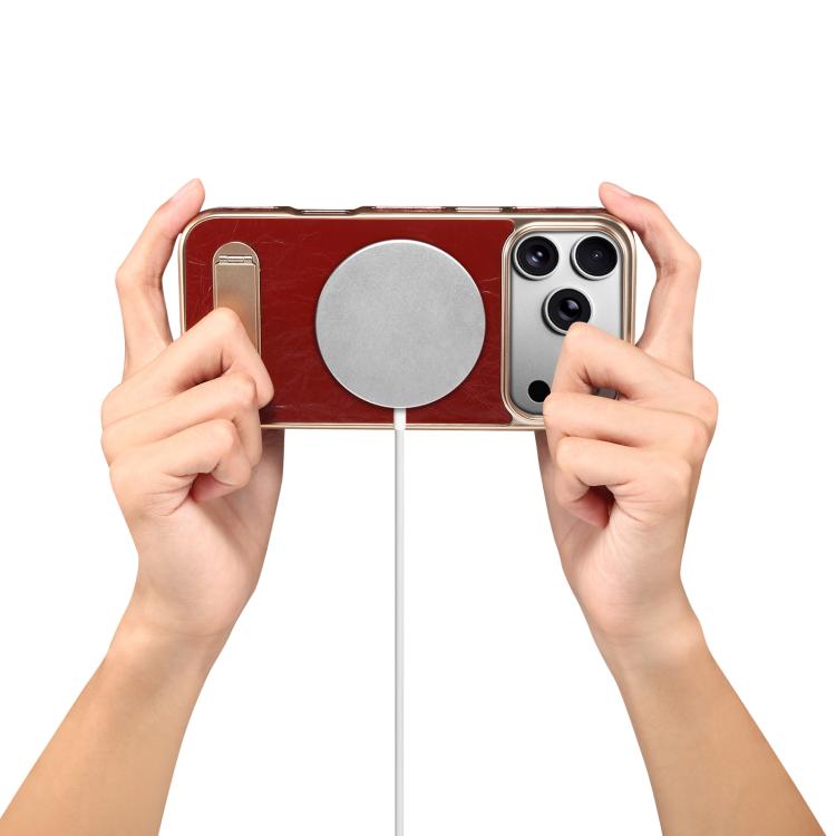 Funda de cuero genuino MagSafe Denior A25 para iPhone 17 Pro Max con soporte (rojo)
