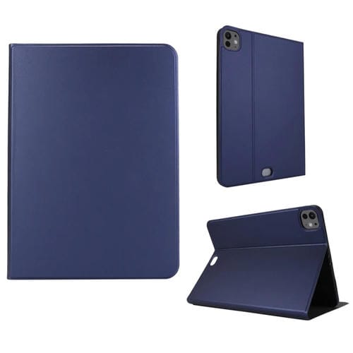 Funda inteligente de cuero liso con tensión elástica para iPad Pro 11 (2024) (Azul Oscuro)