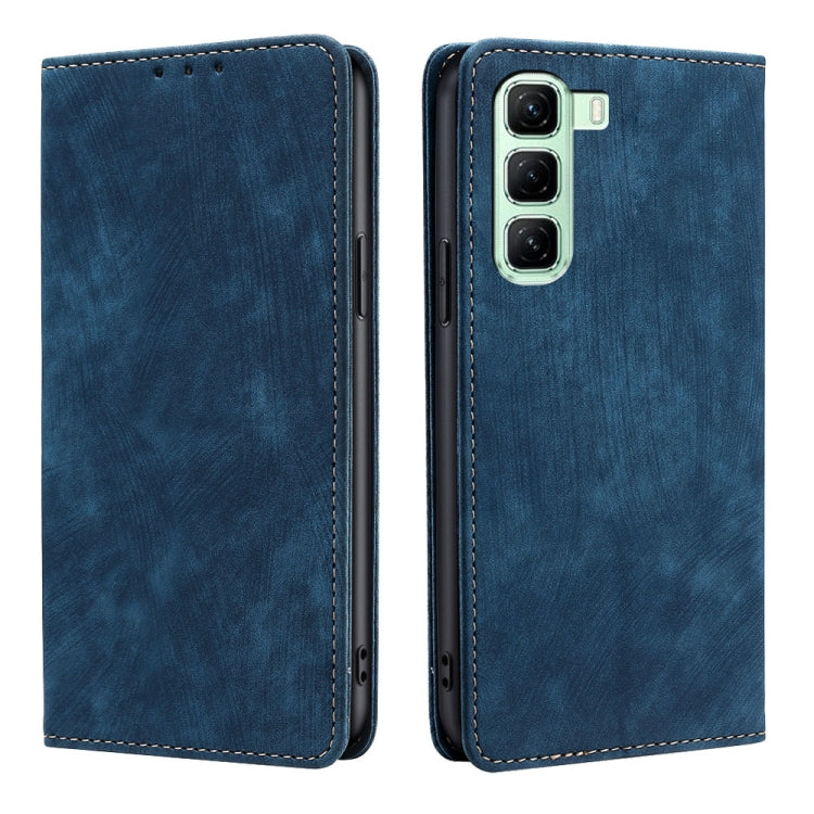 Funda de Cuero Magnética con Cepillo Antirrobo Rfid para Infinix Hot 50 5G (Azul)