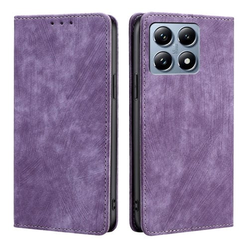 Funda de Cuero Magnética con Cepillo Antirrobo Rfid para Teléfono Xiaomi 14T Pro 5G (Morado)