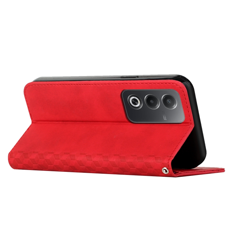 Funda de Cuero Magnética con Diseño de Empalme de Diamantes para Oppo A3 Pro (Rojo)