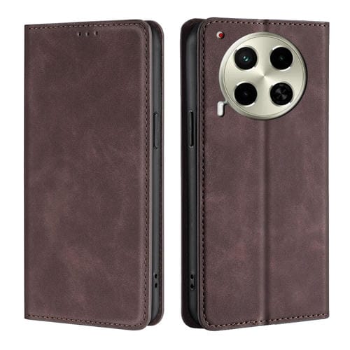 Funda de Cuero Magnética para Tecno Camon 30 con Tacto de Piel (Marrón Oscuro)