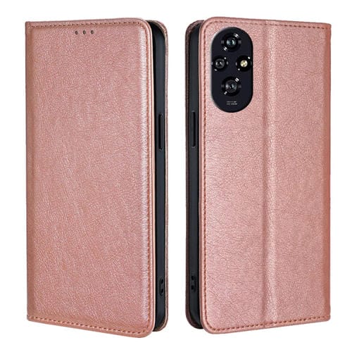 Funda de Cuero Magnética para Honor 200 5G con Acabado Brillante y Aceite (Oro Rosa)