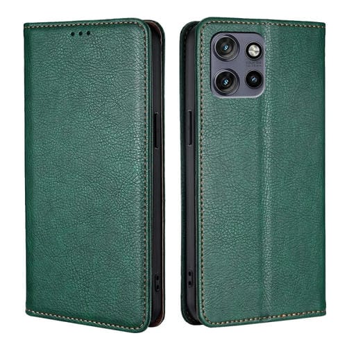 Funda de Cuero Magnética para Motorola Edge 50 Neo 5G (Verde) con Acabado Brillante y Aceite Sólido
