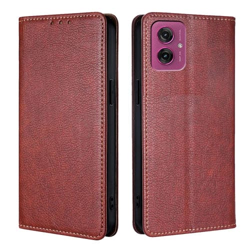 Funda de Cuero Magnética para Motorola Moto G55 5G con Acabado Brillante (Marrón)