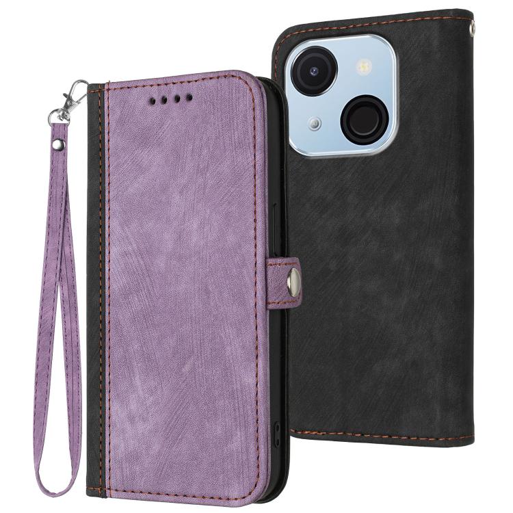 Funda de Cuero para Teléfono Itel A50C con Correa de Mano y Hebilla Lateral Doble Plegable (Morado)