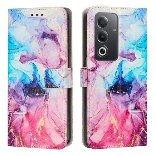 Funda de Cuero para Teléfono con Patrón de Mármol Pintado de la India para Oppo A3 Pro 5G (Rosa y Morado)