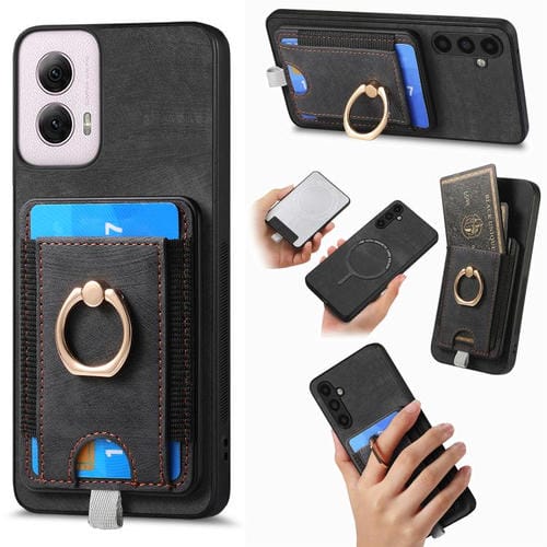 Funda de Cuero para Motorola Moto G Power 2024 5G con Tarjetero Magnético Divisible (Negro)