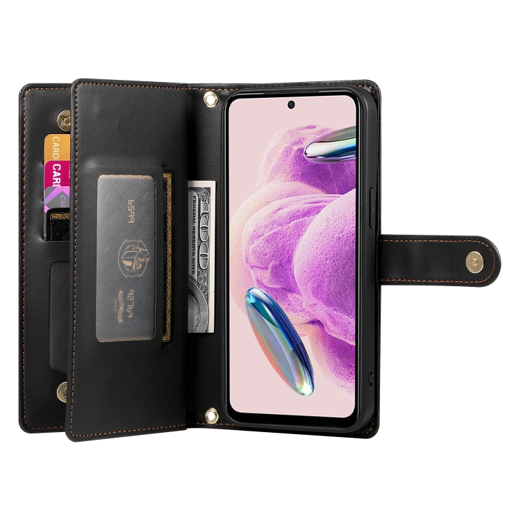 Funda de Cuero para Teléfono Redmi Note 11S 4G con Nueve Ranuras para Tarjetas y Cremallera (Negro)