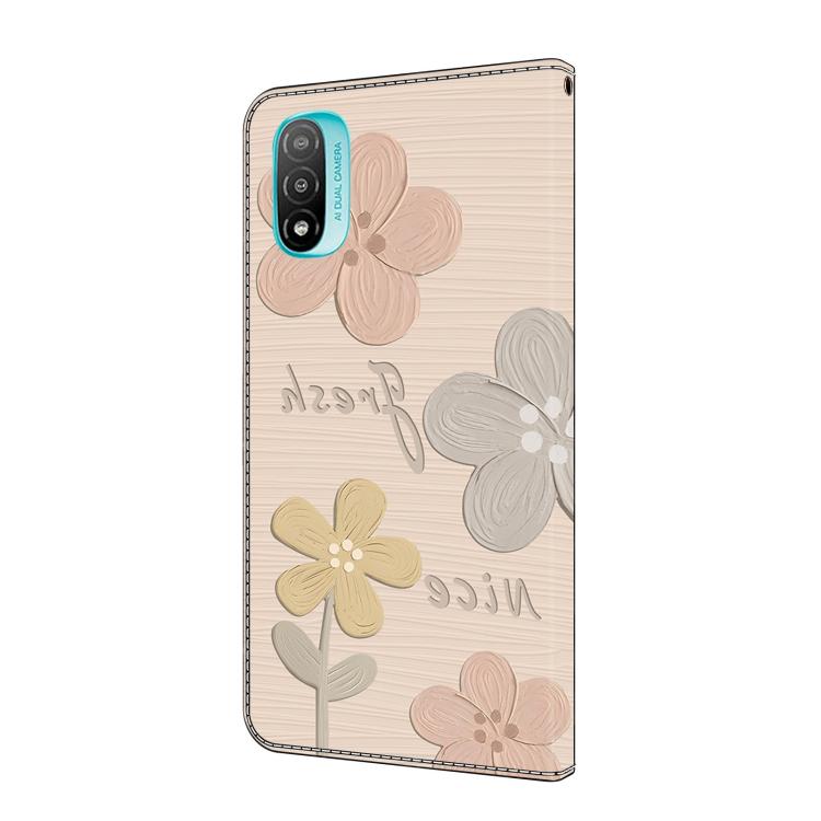 Funda de Cuero Pintada a Mano para Motorola Moto E20 (Flores Beige)