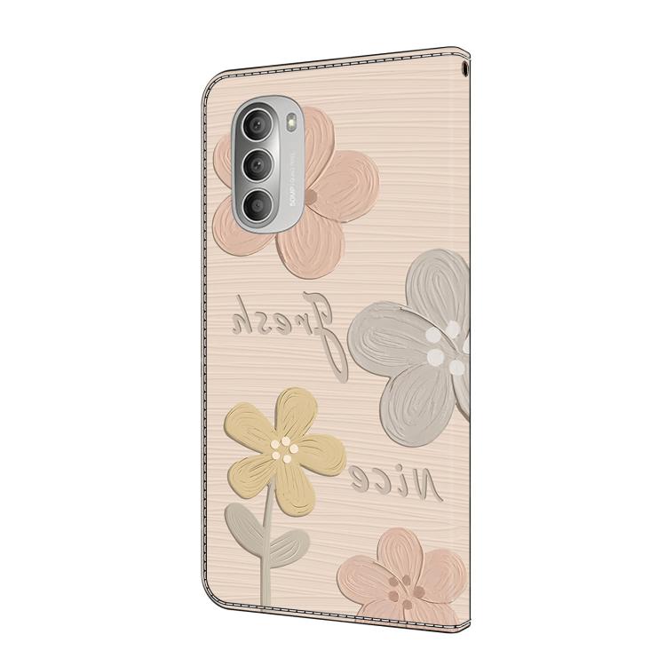 Funda de Cuero Pintada a Mano para Motorola Moto G51 (Flores Beige)