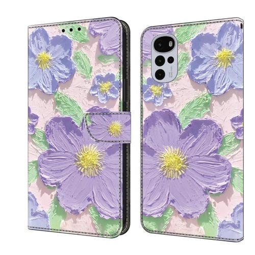 Funda de Cuero pintada al Óleo para Motorola Moto G22 (Flores Moradas)