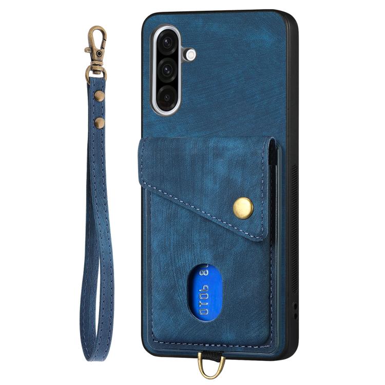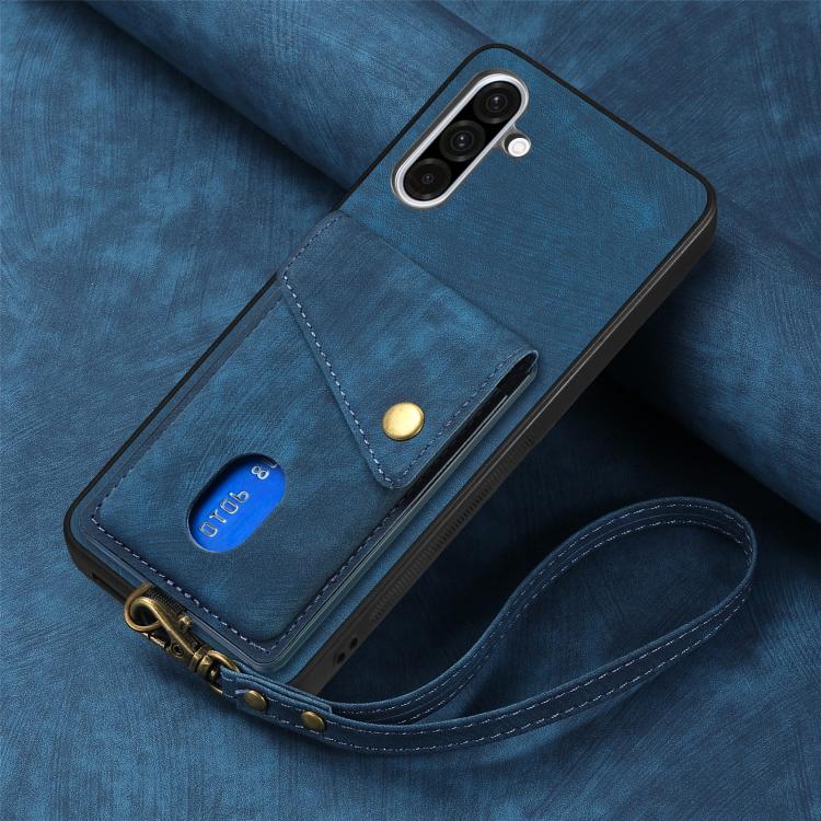 Funda Plegable de Cuero con Correa para Samsung Galaxy A36 con Tarjetero (Azul)