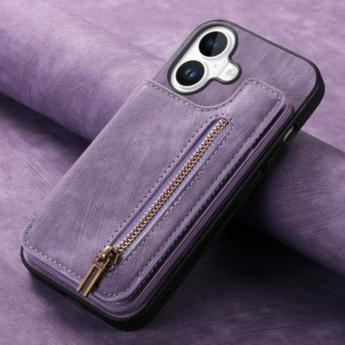 Funda de cuero retro con cremallera para iPhone 17 (morado)