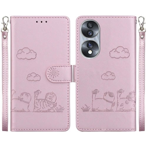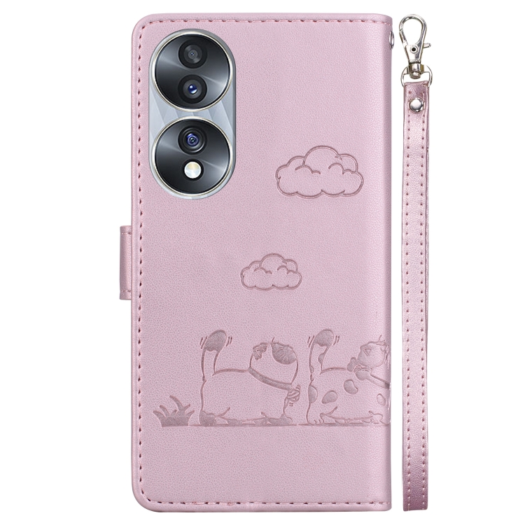 Funda de Cuero Rfid para Honor 70 con Diseño de Gatos (Oro Rosa)