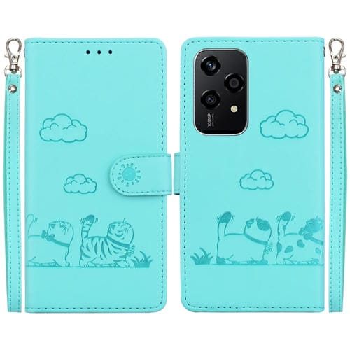 Funda de Cuero Rfid para Honor 200 Lite con Diseño de Gatos (Verde)