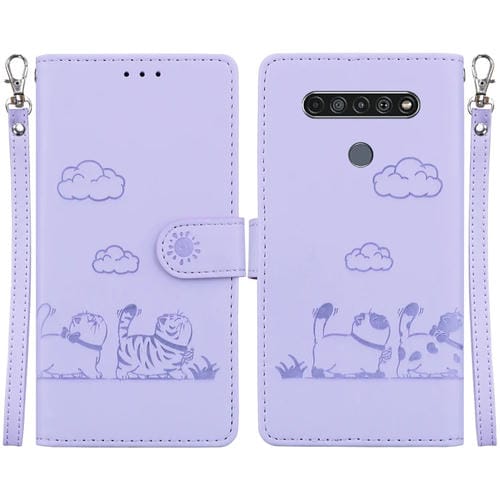 Funda de Cuero Rfid para LG K61 con Diseño de Gatos (Morado)
