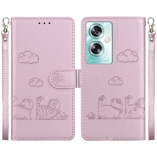 Funda de Cuero Rfid con Diseño de Gatos para Oppo A79 5G Global (Oro Rosa)