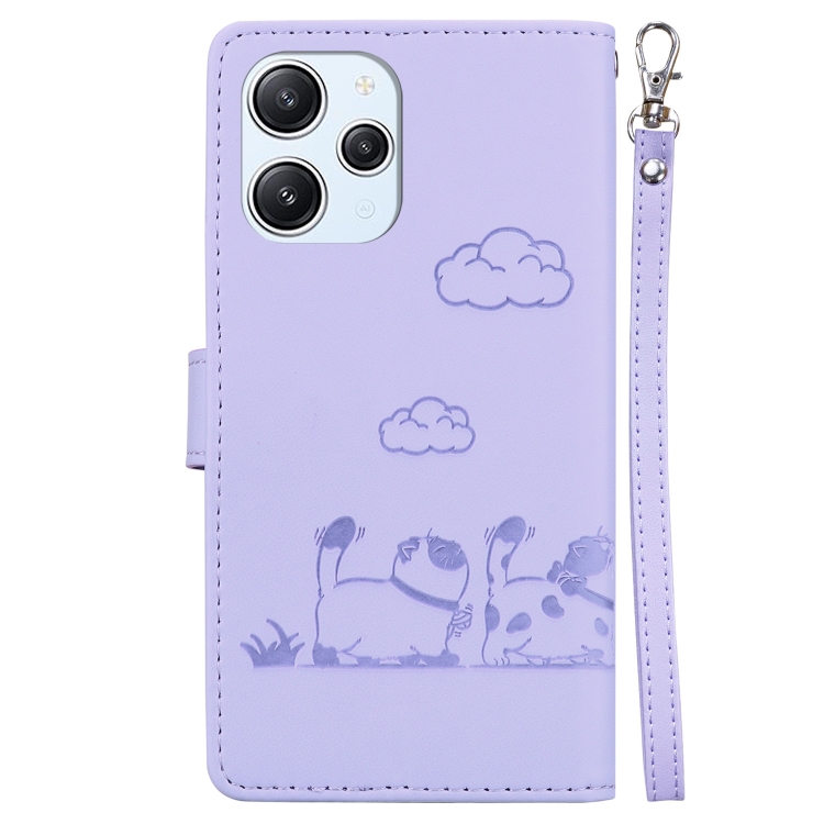 Funda de Cuero Rfid con Diseño de Gatos para Redmi 12 4G/5G (Morada)
